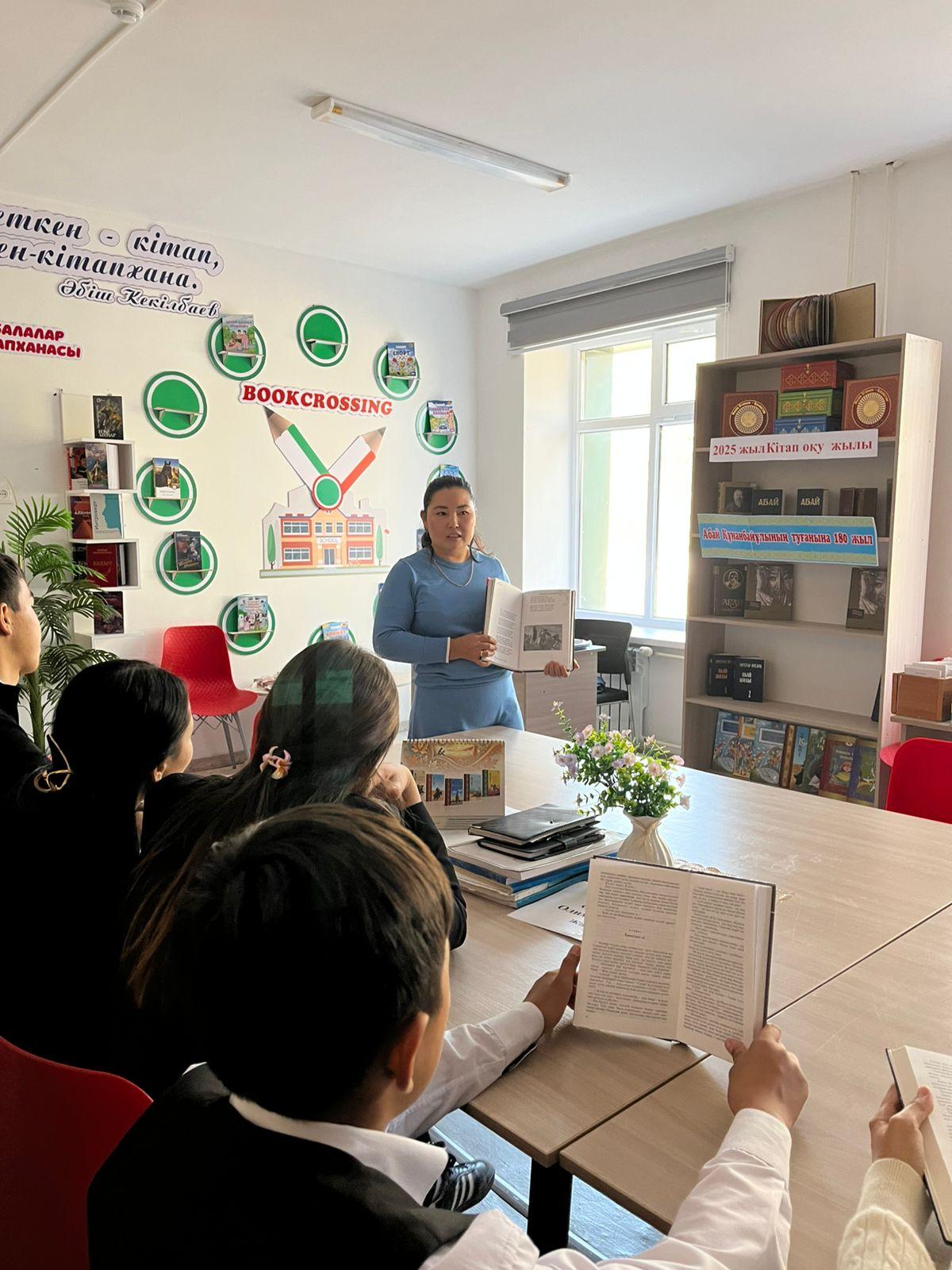 № 4 Тілеміс батыр жалпы орта білім беретін мектеп кітапханасында «Абай Құнанбайұлының туғанына 180 жыл» көрме ұйымдастырылды