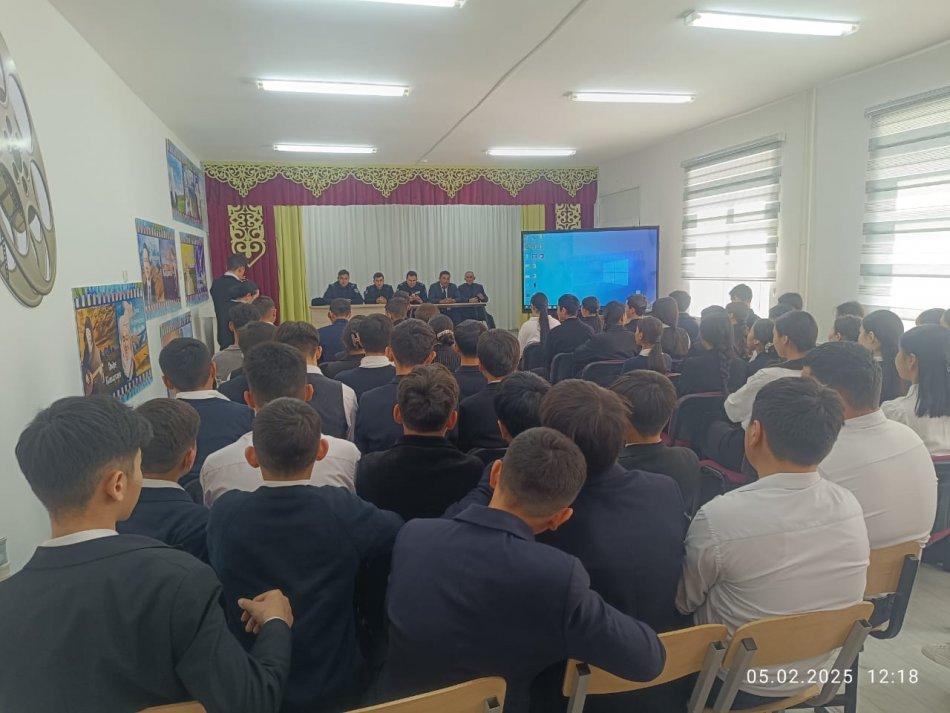 «Құқық бұзушылық пен қылмыстың және жыныстық тиіспеушілік, жол көлік оқиғаларын алдын алу» тақырыбында дәріс оқып,түсіндірме жұмыстары жүргізілді. » СШ№4 Тлемис батыра