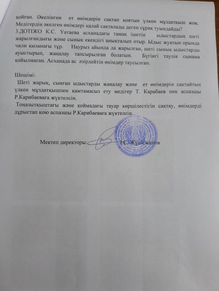 Тамақтану сапасына мониторинг жүргізу » СШ№4 Тлемис батыра