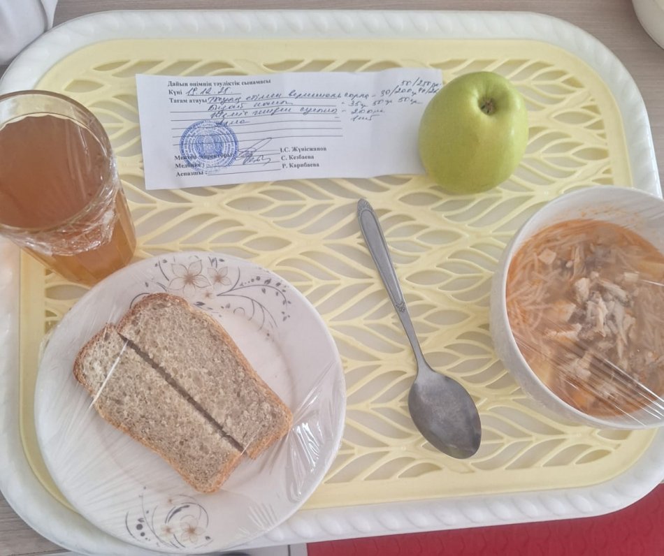 19 декабрь 2025 0 1 2 3 4 5 Ыстық тамақ Бастауыш 1-4 сынып оқушылары мен жекелеген санаттағы оқушылар тегін және жеңілдетілген тамақпен қамтылып отыр. Жұма 19 желтоқсан күнгі ас мәзірі : тауық етімен вермешель сорпасы, алма, бидай наны, жеміс-жидек сусыны.